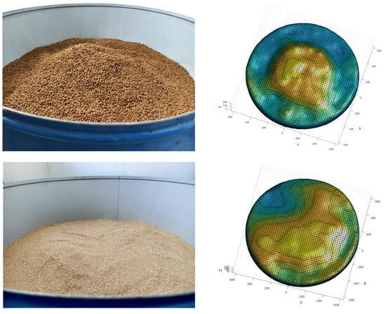 In contrast, implicit surface reconstruction techniques [], such as Poisson Surface Reconstruction (PSR) [], generate smooth and continuous surfaces by minimizing an objective function. This makes them well suited for reconstructing complex geometries, even in noisy and sparse data conditions []. Implicit reconstruction is particularly advantageous for capturing the irregular and natural accumulation patterns of grain heaps [].