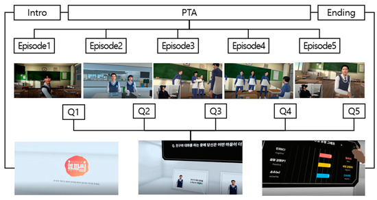 We assembled an interdisciplinary project team comprising psychologists, digital media creators, and computer scientists, who are domain experts and researchers. In this project, a multidimensional empathy scale for adolescents was designed by psychologists based on different empathy theories and instruments such as the Positive and Negative Empathy Scale (PaNES) [42] and the Cognitive, Affective, and Somatic Empathy Scale (CASES) [43]. Six elements along three dimensions of empathy (cognitive−affective, positive−negative, and majority−minority) were used to form eight unique types of empathy. The Multidimensional Empathy Scale for Adolescents (MESA) [44] was adapted for EmpathyVR, a scenario-based IVR role-play content for PTA, followed by a validation study [15]. However, user experiences focusing on VHI and IVR role-playing, which are important aspects of scenario-based PTA, have not been investigated. Therefore, this study examines the utility of IVR and role-playing with VHs in PTA through the user experience in EmpathyVR.