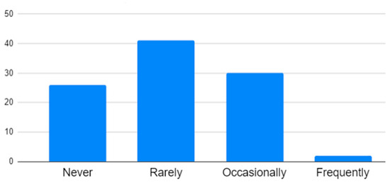 The pretest questionnaire included questions about the participants’ gender, age, and prior experience with IVR. The results indicated that most participants (68%) never or rarely used IVR before the experiment, while those who occasionally or frequently used IVR represented 32% of the participants (Figure 2).