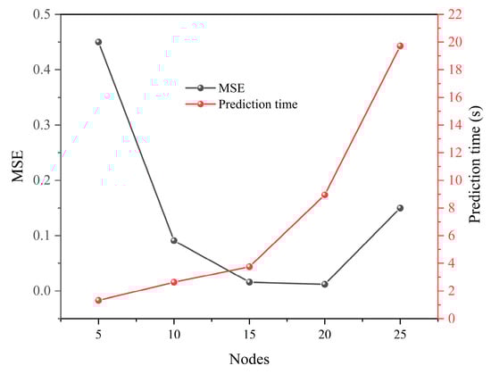 Effect of the hidden layer nodes on the mean square error and prediction time.