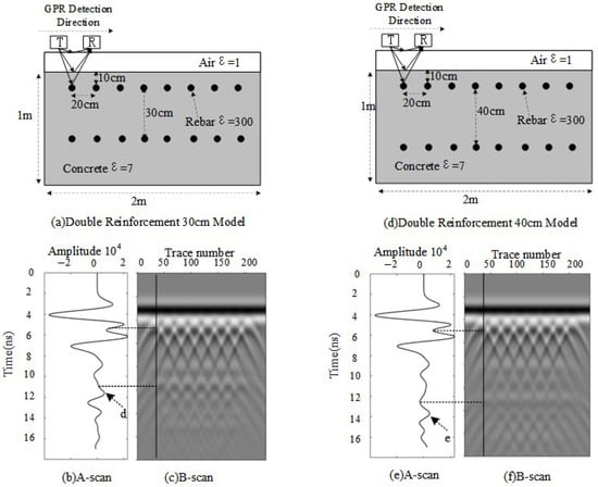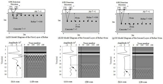 Figure 5a,b. For constructive interference, a comparison is made between a single-layer rebar at a burial depth of 10 cm and a double-layer rebar with a 40 cm spacing, as shown in