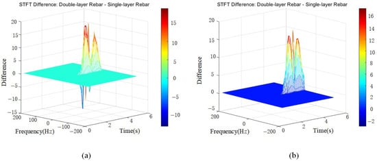 To clearly observe the differences between single-layer and double-layer media in GPR signals, a differential short-time Fourier transform (STFT) analysis was performed, as shown in