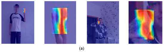 Furthermore, by computing the gradient of the feature map to generate a heatmap, we gain deeper insights into the model’s attention to relevant features during the detection process. The heatmaps generated before and after the model improvement are shown in Figure 15. In the heatmap, deeper red indicates higher attention, yellow represents moderate attention, and blue signifies minimal impact on image recognition, which the model considers as redundant information. It can be observed that the improved model focuses more on the shape features of fingers, with the main attention areas concentrated on the shape of the gesture, which is more beneficial for recognizing gesture commands.