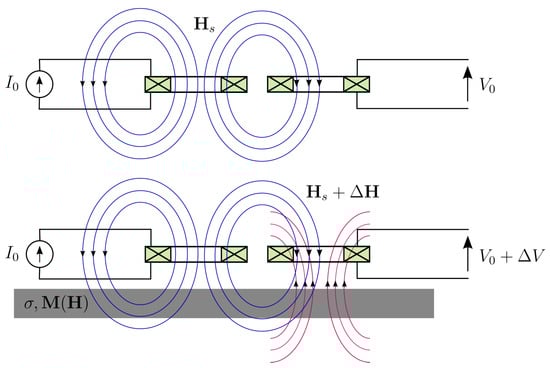 Magnetic methods for the characterisation of ferromagnetic materials exploit the interaction between an inductor (or a system of these) and the tested specimen, which is brought in close interaction. The working principle is schematically explained in Figure 2.
