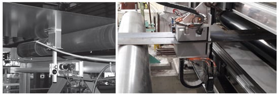 Examples of 3MA and PropertyMon plant installations for the in-line monitoring of steel strips. (Left) 3MA probe (image reproduced from [25]). (Right) PropertyMon heads (image courtesy of Primetals).