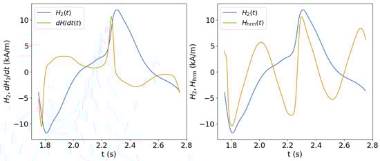 Note that the field amplitude is not a material parameter and it is not of interest us as such, yet it has an impact on the magnetisation function. We set ; it is reasonable to assume that it remains constant throughout our study since it expresses how deeply in the saturation domain we arrive for a given hysteresis shape. Furthermore, for large , we do not expect a dramatic form change in the signals. Thereupon, a can be kept out of our analysis.