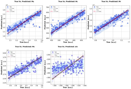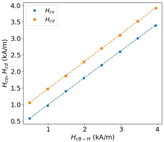 stands for the coercive field, is the remanence, and is defined as the virgin curve value that corresponds to the coercive field, namely, . The model performance is illustrated in Figure 5(right). We can easily observe the better fit for the higher field values.
