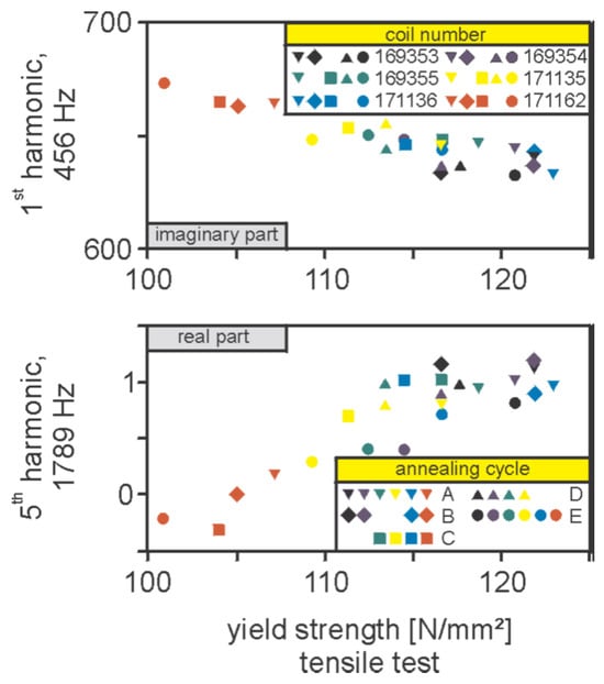 In the previous paragraph, mention was made to three popular commercial devices that have been successfully used for the quality control of the steel strips in production lines via the in-line monitoring of the magnetic properties: the 3MA, the HACOM, and the PropertyMon system. All three devices perform harmonic distortion measurements (alongside others) and are capable of predicting properties like the yield and tensile strength , using integrated multi-parameter regression tools.