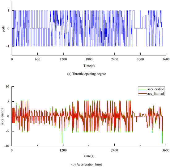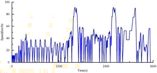 where G is the vehicle’s gravity, ; is the road’s slope; is the air resistance coefficient; A is the windward area, ; is the rotational mass conversion factor; m is the mass, kg; is the driving acceleration, .