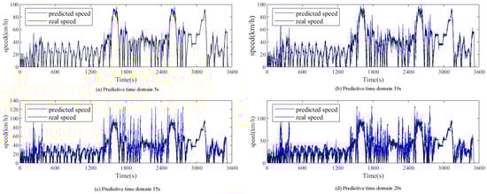 From previous experiments on speed prediction, we understand that the prediction horizon is a crucial parameter. A horizon that is too short imposes a significant computational burden on the system, hindering the real-time update of vehicle information, while a horizon that is too long may result in poor prediction accuracy. Therefore, selecting an appropriate prediction horizon is vital for the experiments. In this paper, we base our predictions on LSTM and adjust the horizon to 5 s, 10 s, 15 s, and 20 s. In reference [], it was pointed out that either too short or too long LSTM prediction field of view would have a negative impact on the experiment, so this paper chose the prediction field of view between 5 s and 20 s for testing.