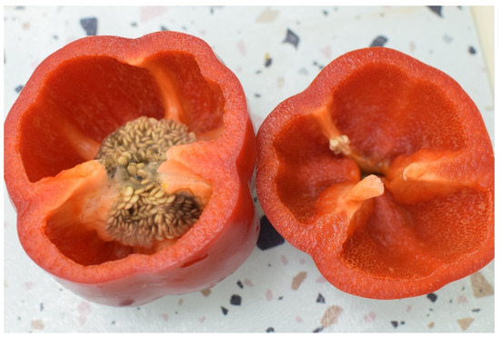 - Niem, J.; Miyara, I.; Ettedgui, Y.; Reuveni, M.; Flaishman, M.; Prusky, D. Core Rot Development in Red Delicious Apples Is Affected by Susceptibility of the Seed Locule to Alternaria Alternata Colonization. Phytopathology 2007, 97, 1415–1421. [Google Scholar] [CrossRef]