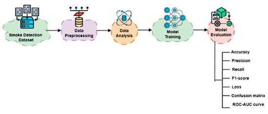 18]. The application of machine learning algorithms within predictive models analyzes enormous sensor data from the environment to detect initial indicators of fire ignition through monitoring parameters such as temperature variation, humidity levels, hazardous gas detection, and air quality changes. Machine learning models surpass traditional threshold-based systems because they analyze past fire incidents to assess the accuracy and reliability of fire prediction data [