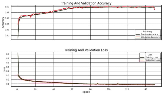 The model displays excellent generalization properties through its accuracy and loss patterns. It shows proper learning rate adjustment due to an initial rapid learning period that transitioned into stable performance. The model maintains equivalent performance between its training and validation phases, indicating it will produce dependable outcomes for fresh data in practical settings. The model achieved nearly perfect final accuracy by successfully extracting the essential features from the well-structured dataset. Reaching this level of accuracy raises doubts about whether the dataset’s simplicity allows easy classifications. Real-life conditions make it challenging to get perfect accuracy because unseen data generally shows increased variability. Testing the model with new independent data would be beneficial to prove its stability range. The loss and accuracy curves indicate proper training execution and suitable model architecture selection, making it possible to assess whether the model falls between correct and incorrect fit areas. Implementing data augmentation and ensembling multiple models alongside hyperparameter optimization can enhance the application’s performance.