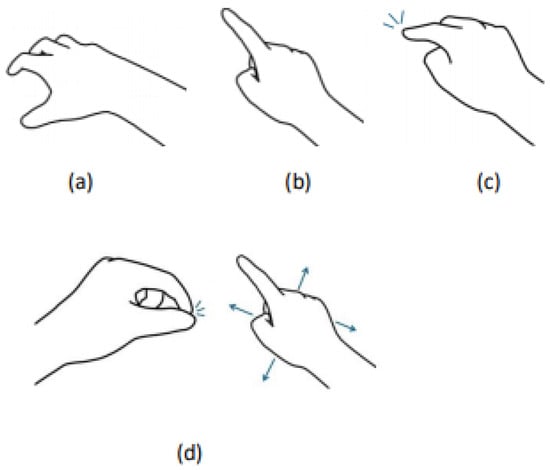 - Nielsen, M.; Störring, M.; Moeslund, T.B.; Granum, E. A procedure for developing intuitive and ergonomic gesture interfaces for HCI. In Proceedings of the Gesture-Based Communication in Human-Computer Interaction: 5th International Gesture Workshop, GW 2003, Genova, Italy, 15–17 April 2003; pp. 409–420. [Google Scholar]
