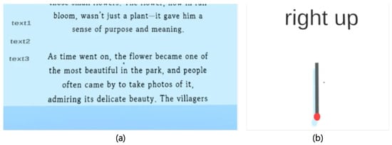 In the scrolling task, participants interacted with three types of textual content such as a short novel, an article, and an informational passage (Figure 5a). Participants performed approximately 60 scrolling gestures at intervals of 23 cm, with scrolling actions registered only if gaze remained within the text area. This design aimed to simulate realistic usage and assess perceived comfort, usability, and fatigue.