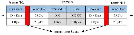 The microcontroller and FPGA communicate via dual serial ports configured in primary backup redundancy. As illustrated in Figure 14, the instruction and data frame format for bidirectional communication is structured as follows: