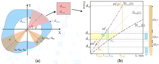 The radial cross-section of shaped pipes shows variations in radial span, and significant differences in depth of field occur across different view angles during imaging. Based on the camera’s depth of field and the focusing principle, achieving high-quality imaging of shaped pipe interiors requires aligning the pipe surfaces, which have varying depth spans, to the corresponding confocal surfaces within the depth interval. However, within the imaging field of view, the actual depths of both the nearest point and the farthest point in the depth span are substantial, making it impossible to image them on the same focusing plane. As a result, cameras with a single depth of field are often unsuitable []. Therefore, this study proposes a circular panoramic depth-of-field imaging method based on depth detection. The schematic representation of this principle is shown In Figure 1.
