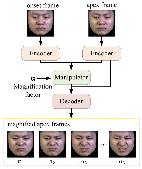 27]. Currently, motion magnification networks are primarily trained on macro-expression datasets, whereas ME datasets are relatively smaller. Therefore, in this study, we introduce a transfer learning approach to the motion magnification network. We use large-scale datasets of macro-expressions to initialize the weights, and then fine-tune these weights on smaller ME datasets to ensure that the motion magnification network can effectively magnify subtle facial muscle movements in MEs. Importantly, this magnification process simultaneously serves as a data augmentation mechanism, generating enhanced training samples while improving feature extraction, thereby addressing two critical challenges in ME recognition simultaneously.