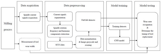 Figure 2 shows the framework of the proposed method for determining the timing of replacing worn milling cutters based on SCCS and CNN. It mainly includes the collection of spindle current signals, the extraction of SCCS data, the training of CNN models, the recognition of wear status, and the determination of tool replacement timing.