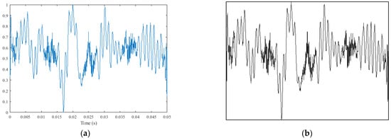 Figure 4b, the image was transformed from a three-channel color image to a grayscale image. This can reduce the amount of data and save the resource cost of neural networks. Finally, the size of the image was adjusted to 160 × 160.