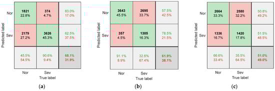 Figure 7, the model’s recognition accuracy is generally low (below 70%). This is due to the difference in cutting parameters between the testing dataset and the training dataset, resulting in significant differences in the original signal of the current. This phenomenon is most evident in