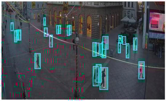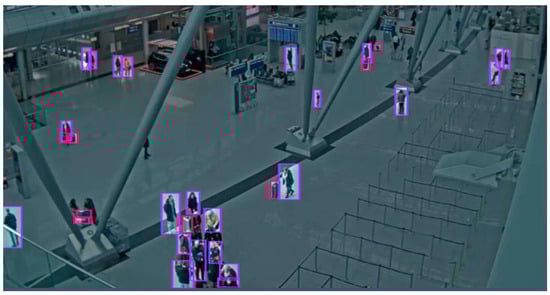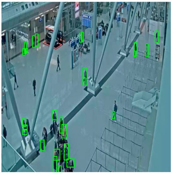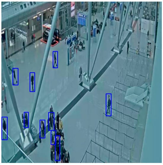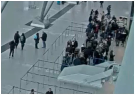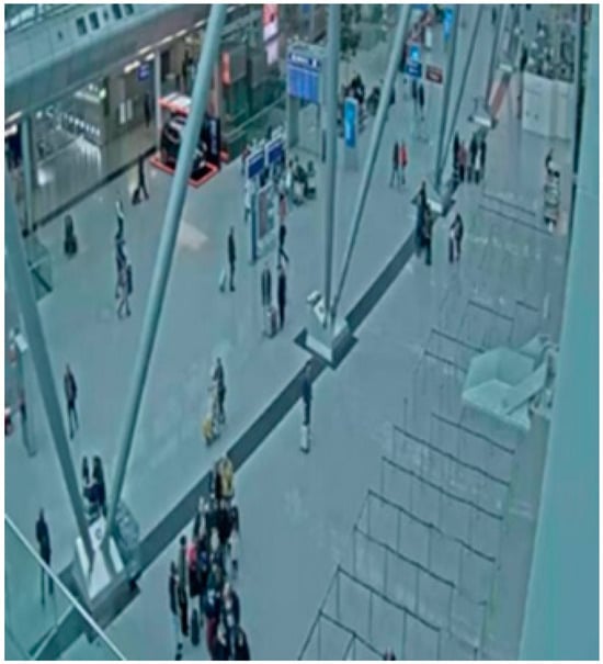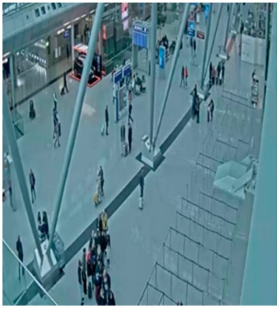 Crowded settings, such as airport terminals or public plazas, introduce significant challenges for abandoned luggage detection. Large numbers of people and objects move through a scene, frequently overlapping and covering each other. This results in luggage sometimes being partially or completely hidden from the camera’s view, complicating its continuous tracking and luggage association with the owner. In addition, multiple similar-looking items may be present, creating ambiguity when trying to maintain the identity of each piece of luggage (Figure 21).