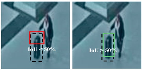 Examples of small objects in our CCTV-KD dataset are compact bags, backpacks, or people who were further away from the surveillance camera, as shown in Figure 14; medium-sized objects are shown in Figure 15. The detection of small objects was challenging for the models, due to insufficient spatial and semantic information at deeper network feature layers, which is crucial for accurate detection.