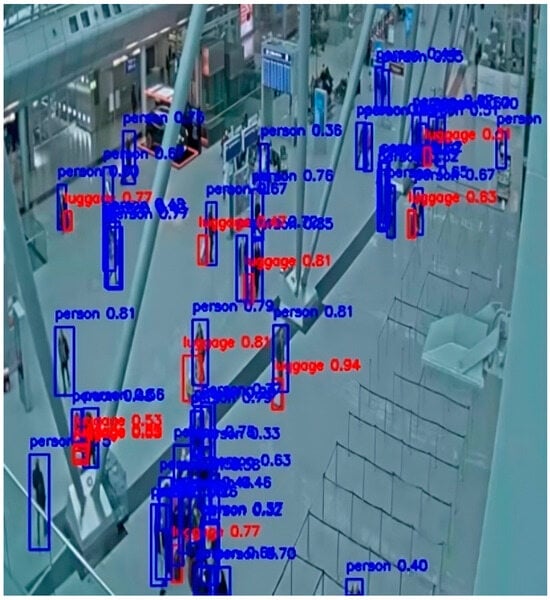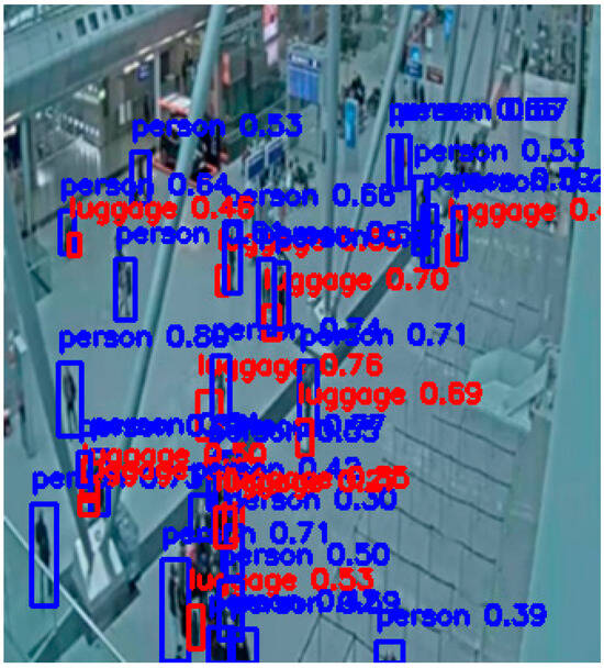 Future improvements in luggage detection systems will focus on enhancing performance in crowded environments by integrating advanced techniques like inter-frame multiscale probabilistic cross-attention mechanisms [19] into YOLO-based models. By utilizing spatial–temporal information from consecutive video frames, these systems can better detect small, occluded, or motion-blurred luggage items while minimizing background noise. Additional advancements, such as multi-camera surveillance setups, improved occlusion-handling algorithms, and robust re-identification methods, will further enhance the ability to track luggage and its owners in dense pedestrian areas with frequent obstructions. These innovations are essential for developing reliable abandoned luggage detection systems capable of operating effectively in real-world, high-traffic scenarios, ensuring both security and efficiency.