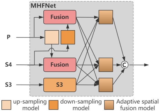 In addition, to align the dimensions and prepare for feature fusion, we use 1 × 1 convolutions and bilinear interpolation to upsample the features. On the other hand, according to the required downsampling rate, we use different convolutional kernels and strides to perform downsampling. We apply a 2 × 2 convolution with a stride of 2 to achieve 2-times downsampling and a 4 × 4 convolution with a stride of 4 to achieve 4-times downsampling.