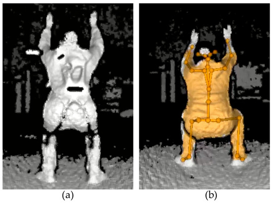Skeletal joints were not detected while wearing the exoskeleton (a) compared to the control (b).