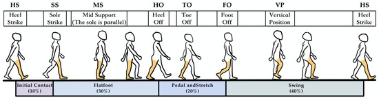 Pedestrians exhibit a certain periodicity during walking or running, which is more pronounced in the raw IMU data from the lower limb-fixed sensors. Analyzing each gait cycle helps in the subsequent research on inertial navigation and magnetic field fusion positioning. This section decomposes the gait division using the raw IMU data collected, with the cycle and key event markers shown in Figure 3 and Table 2.