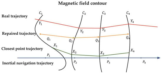 Section 2 primarily addresses yaw angle errors by proposing an improved fusion EKF algorithm that uses magnetic field information to constrain the yaw angle, aiming to improve overall yaw angle accuracy. However, due to the continuous accumulation of errors in low-cost MEMS-IMUs and the inevitable presence of points with significant changes in indoor or quasi-indoor magnetic fields, the system may still experience error accumulation. Magnetic Field Matching (MM) is one of the mainstream indoor positioning methods that utilizes the natural distribution of magnetic field information.