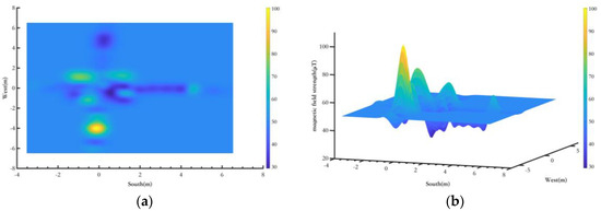 In Equation (7), represents the three-axis magnetic field strength, and represents the pedestrian’s position, which indicates that the magnetic field strength is only a function of position. Thus, we have