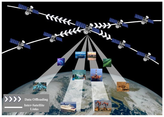 - Zhou, J.; Zhao, Y.; Zhao, L.; Cai, H.; Xiao, F. Adaptive Task Offloading with Spatiotemporal Load Awareness in Satellite Edge Computing. IEEE Trans. Netw. Sci. Eng. 2024, 11, 5311–5322. [Google Scholar] [CrossRef]