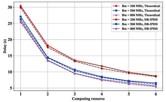 5.6. Delay Performance with Different Computation Resources and Different Bandwidths
