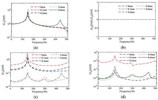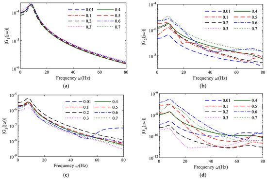Figure 6 represents the first four orders of NOFRFs computed by the generalized accompanying linear equations method (GALEs) of the NARX model, respectively, for the MDOF system under different nonlinear stiffnesses.