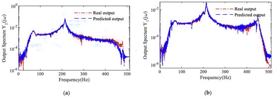 Model prediction output spectrum: (a) 0 mm cracked beam; (b) 6 mm cracked beam.
