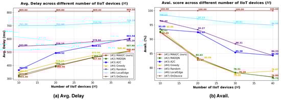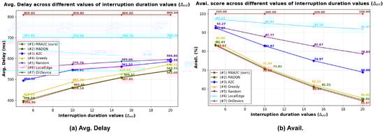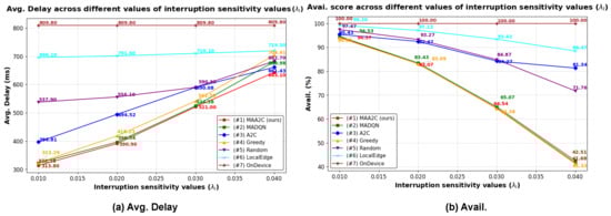 - MAA2C-based (#1—ours): This is our proposed task offloading strategy that uses a MAA2C-based approach to solve the offloading optimization problem to minimize the total delay with the proposed load-based interruption model.