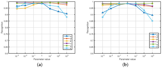 As our method is designed for application in an online setting and with incremental data, we strictly followed the settings used in an existing work [17]. Specifically, the MIT-BIH dataset includes five data chunks, with the first four chunks containing 70 samples and the last round carrying the remaining 49 samples. The CYBHiDB dataset has six rounds. The first five rounds contain 108 samples, while the sixth chunk contains 27 samples. The Hadamard matrix is defined as . We set the dimensionality of the latent representation space, r, to 128. The iteration number T was six. For the trade-off parameters, most of them were set to 1 except for , based on our parameter-sensitive analysis.