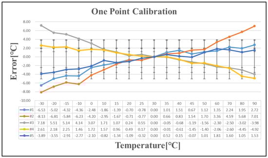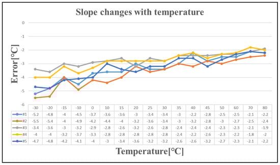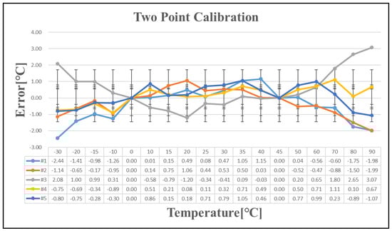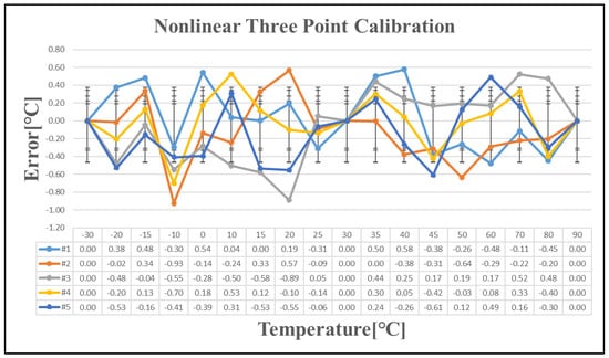 To further evaluate the effectiveness of the nonlinear calibration, the estimated temperature error was calculated using the nonlinear calibration formula, with the results presented in Figure 14.