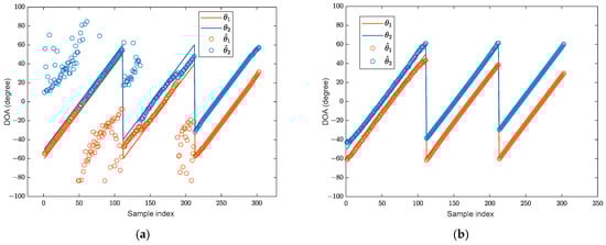where are Lagrange multipliers, and is the kernel function. Obviously, Equation (16) is a quadratic programming problem, which can be solved by the sequential minimum optimization algorithm for the parameter . The final DOA estimation result of the proposed algorithm in this paper can be obtained as