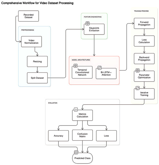 The methodology employed in our Arabic Sign Language Sentences (ArSLS) model is shown in Figure 1. It details the data collection, preprocessing, model architecture, and evaluation processes used for training and testing our deep learning models.