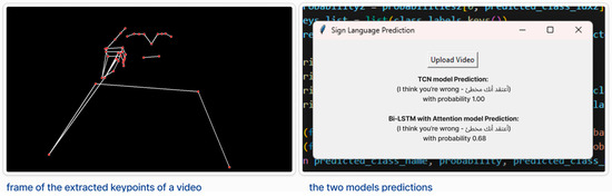 By comparing the Temporal Convolutional Network (TCN) model and the Enhanced BiLSTM with the attention model, we demonstrated that the TCN model excelled in generalisation, speed, and accuracy across the internal and external datasets, achieving an accuracy of 0.995 on the ArSLSR dataset and 0.99 on the external data. Although the TCN model’s simplicity and robust temporal modelling resulted in consistent performance and high prediction confidence, it faced minor challenges with visually similar gestures. Conversely, the BiLSTM with attention model showed remarkable improvement following enhancements, increasing its external dataset accuracy from 0.26 to 0.97. Still, it remained slower and slightly less reliable than the TCN model in some cases.