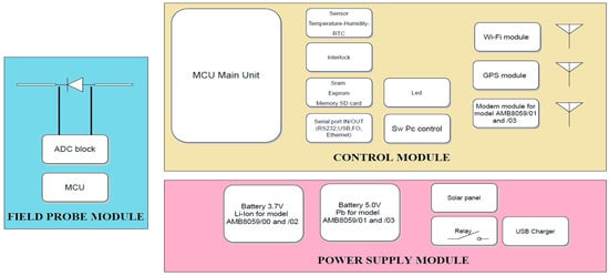 - Antic, D.; Djuric, N.; Kljajic, D. The AMB 8057-03 sensor node implementation in the SEMONT EMF monitoring system. In Proceedings of the IEEE 12th International Symposium on Intelligent Systems and Informatics (SISY), Subotica, Serbia, 11–13 September 2014. [Google Scholar]