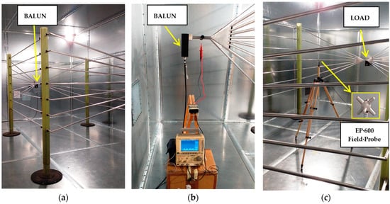 - Carbonini, L. Comparison of analysis of a WTEM cell with standard TEM cells for generating EM fields. IEEE Trans. Electromagn. Compat. 1993, 35, 255–263. [Google Scholar] [CrossRef]
