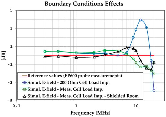 | Freq. [MHz] | Zmeas. [Ω] | Simul. [V/m] | Simul. (with Shield) [V/m] |