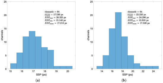 For the measurement of a given time interval, the SSP of a TDC can be estimated by its sample standard deviation . For a dataset with a sample size of , the calculation formula for the sample standard deviation is: