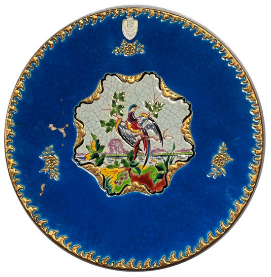 Longwy Pottery and Enamels is a historic company founded in 1798 in Longwy—then part of Moselle and now located in Meurthe-et-Moselle, France, near the borders of Belgium and Luxembourg. Over time, the original company has been succeeded by various entities, continuing its legacy. Longwy enamels are a distinctive form of glazed ceramics, crafted using a specialized technique and expertise recognized in France′s Inventory of Intangible Cultural Heritage. The presence of a monogram—specifically “AK” for Alfred Kirchtetter, known as the “enhancer”, or the artist responsible for applying pigments (mixed with frit) in delicate touches to the raised enamel—helps to date the piece to approximately the mid-twentieth century. His work adds illumination and richness to the decorative surface, enhancing its overall aesthetic appeal.
