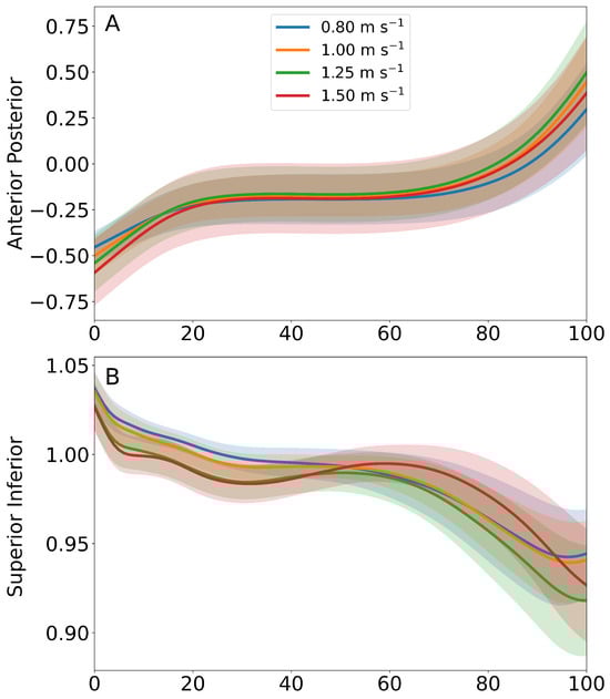 - Hanlon, M.; Anderson, R. Prediction methods to account for the effect of gait speed on lower limb angular kinematics. Gait Posture 2006, 24, 280–287. [Google Scholar] [CrossRef]