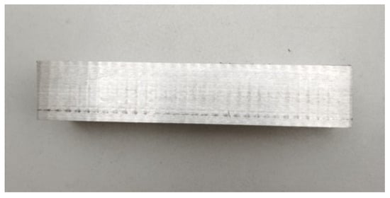 Wear curves are derived by fitting a fifth-order polynomial during grinding, as illustrated in Figure 8. This polynomial fitting provides a smooth representation of the wear progression over time. In Figure 8, the sharp abrasive grains on the surface come into contact with the surface of the workpiece for the first time in 0–11 grinding strokes, resulting in more abrasive grains falling off, a high wear rate, and the grinding wheel being in the early stage of wear. During 11–45 grinding strokes, the grinding wheel enters into a relatively stable working state, the wear rate is relatively stable and low, and the grinding wheel is in the normal wear stage. During 45–60 grinding strokes, the abrasive grains of the grinding wheel gradually become blunted, resulting in a significant decrease in cutting ability, indicating that the grinding wheel has entered the normal wear stage. Blunting and reduced cutting ability result in a significantly higher wear rate, causing the grinding wheel to fail and gradually enter the sharp wear stage. A worn wheel may cause vibration marks and damage to the surface of the workpiece due to continuous friction and the heat generated by the friction, as shown in Figure 9.